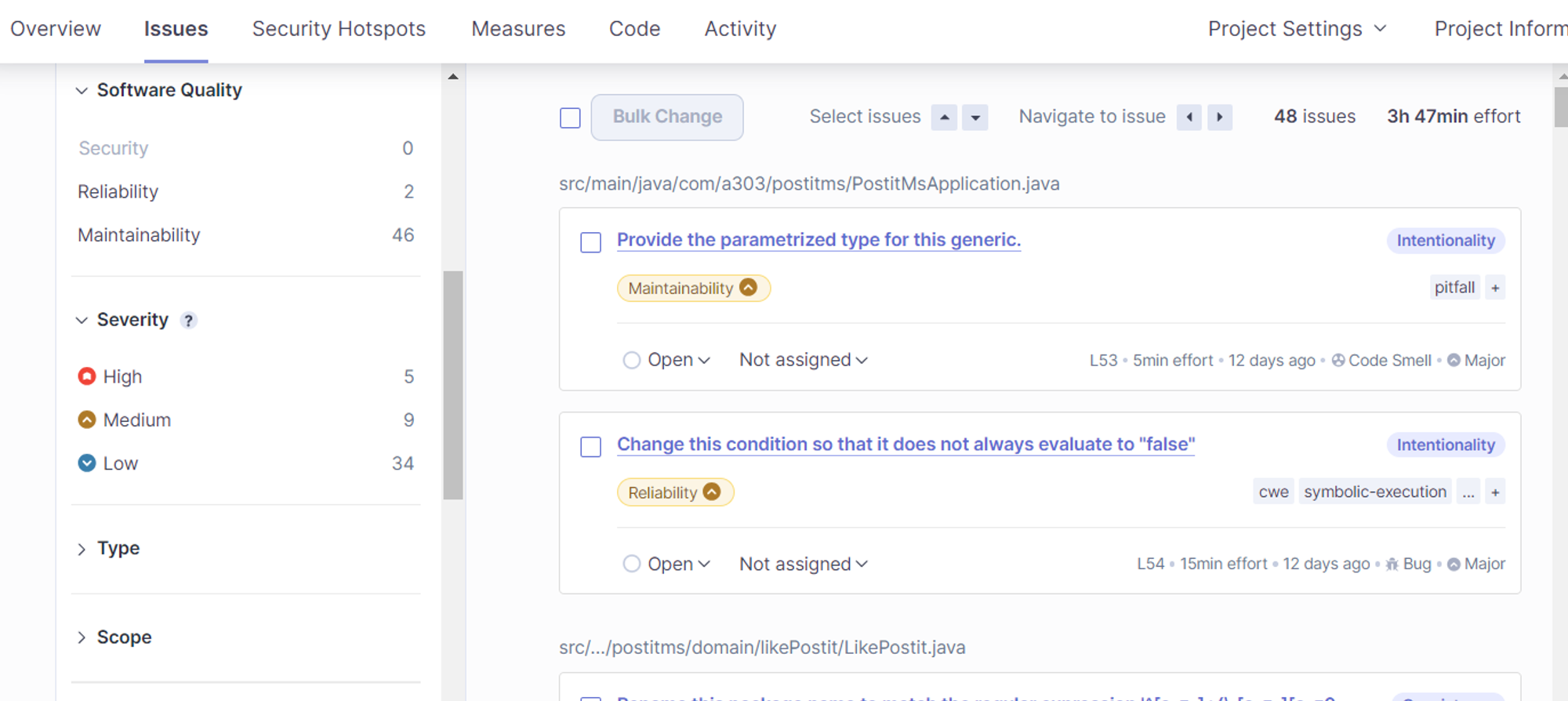 - Severity : 심각도 - 프로젝트 분석을 위해서 규칙들의 집한인 Quality Profile을 사용하며 적용된 규칙이 얼마나 심각하고 중요한지를 나타냄